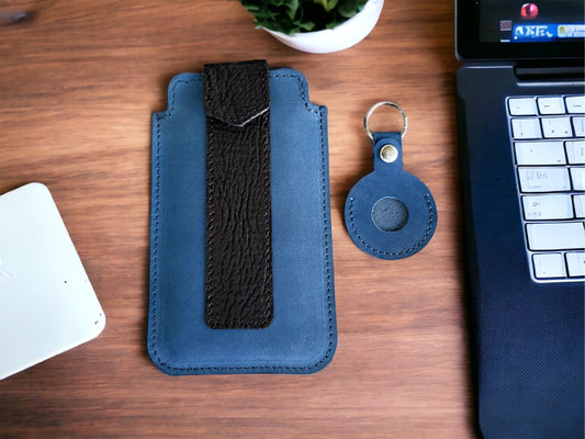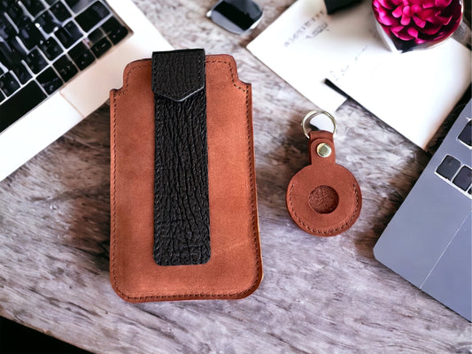 Iphone Case, Iphone Sleeve, Black Shark Skin and Cowhide Leather Phone Case, Leather Iphone Case, Leather Iphone Holder, Leather Cell Phone Sleeve